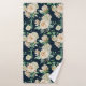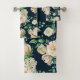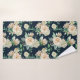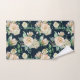 Belle rose blanche & hydrangea fleurs motifs floraux serviette de bain sur un arrière - plan noir