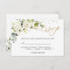 Cette conception présente une illustration de roses blanches avec un feuillage coloré et éclatant en aquarelle. Le texte "rsvp" est écrit dans un Script.