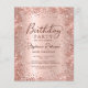 Moderne Budget élégant or rose métal et parties scintillant 90e anniversaire invitations de fête. Ce design de carte à poutres adultes est composé d'un script de calligraphie manuscrit élégant, d'un arrière - plan métallique en faux or rose ou rose avec cadre de parties scintillant en glam autour. Facile à personnaliser, parfait pour tout âge.