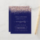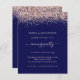 Un rapport qualité-prix BUDGET alternative sur une taille plus petite 4,5 x 5,6" semi-brillant poids 110lbs, qui est d'une épaisseur similaire à une carte postale (cependant ne convient pas à l'utilisation comme carte postale.) VEUILLEZ NOTER qu'il y a UN invitation par feuille. Rose Budget Parties scintillant or Marine Blush Soirée de mariage Invitation. Faux parties scintillant borde le haut de chaque côté, et "soirée" est dans un script élégant avec des swashes. Personnalisez facilement le texte à vos propres détails qui est en rose pâle sur un arrière - plan bleu marine.