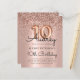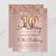 Budget Célébrez en style avec cet élégant Rose Gold Parties scintillant Balloon 10th Birthday Invitation. Doté d'une calligraphie élégante et d'un ballon rose à feuille d'or, ce design est rehaussé d'une bordure de parties scintillant brillante et d'un arrière - plan luxueux à feuille métallique rose vif. Parfait pour une fête de fille de 10 ans, il capture le plaisir et le glamour d'une fête d'anniversaire de parties scintillant d'or rose moderne. Des invitations d'anniversaire abordables.