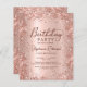 Budget Moderne rose élégant or métallique et parties scintillant 21e anniversaire invitations de fête. Ce design de carte à poutres adultes est composé d'un script de calligraphie manuscrit élégant, d'un arrière - plan métallique en faux or rose ou rose avec cadre de parties scintillant en glam autour. Facile à personnaliser, parfait pour tout âge.