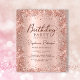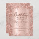 Budget Moderne élégant rose or métallique et parties scintillant 60e anniversaire invitations de fête. Ce design de carte à poutres adultes est composé d'un script de calligraphie manuscrit élégant, d'un arrière - plan métallique en faux or rose ou rose avec cadre de parties scintillant en glam autour. Facile à personnaliser, parfait pour tout âge.