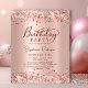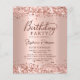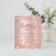 Budget Modern Elegant Script Rose Gold Metallic Parties scintillant 80e anniversaire invitations de fête. Ce design de carte à poutres adultes est doté d'un script de calligraphie (ou typographie) manuscrit élégant, d'un arrière - plan de feuille métallique en faux or rose ou rose avec une bordure de parties scintillant de glam lâche en haut et en bas. Facile à personnaliser, parfait pour tout âge.