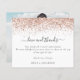 Un rapport qualité-prix BUDGET alternative sur une taille plus petite 4,5 x 5,6" semi-brillant poids 110lbs, qui est d'une épaisseur similaire à une carte postale (cependant ne convient pas à l'utilisation comme carte postale.) VEUILLEZ NOTER qu'il y a UN invitation par feuille. Rose Budget Parties scintillant or Merci Mariage photo. Une touche de glamour avec une fausse bordure de parties scintillant en or rose en haut et un script élégant avec des swashes pour Love and Thanks. Personnalisez facilement le texte avec votre message et vos noms.