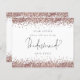 Rose Budget Parties scintillant Or Script Bridesmaid Demande. Un prix économique 4,5 po x 5,6 po alternatif. Disponible dans un STOCK CARD SEMI GLOSS 110 lb qui est l'option par défaut (plus épais pour les invitations) Bridesmaid est dans un script stylé est au centre. Une bordure de fausse parties scintillant en or rose est en haut et en bas de chaque côté.
