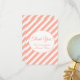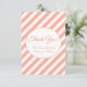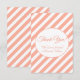 Carte plate de remerciement rose de corail de mode avec un fond rayé rose de corail pastel et blanc. Les textes peuvent être personnalisés.
