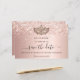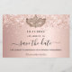 Une carte Save the Date pour une mascarade de 50e (ou tout âge) anniversaire. Un arrière - plan d'or rose décoré de confettis et d'un masque masqué. Personnalisez et ajoutez une date et un nom/âge. Le texte : Save the Date est écrit avec un grand script de style à la main tendance avec des swashes.