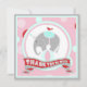 Copie douce de point de polka avec l'éléphant de cirque équilibrant sur la boule avec l'oiseau dans le casquette de partie se tenant sur son carte de remerciements arrière.