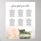 Cet élégant tableau de sièges de mariage a assigné des tables pour 60 invités à dix personnes par table. Il dispose d'un design magnifique avec un rose couleur pêche pâle orange ou clair reflétant dans l'eau avec des vagues et des ondulations. Le titre de calligraphie du script lacy dit "s'il vous plaît trouvez votre table" Il y a de l'espace pour les noms du couple mariage ainsi que la date du mariage.