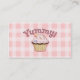 Cartes de visite lunatiques de boulangerie faits à un arrière-plan checkered rose et blanc. Des graphiques doux d'un ruban et d'un arc roses, à travers le milieu est décorés d'un trio rose du petit gâteau A des petits gâteaux décorent le verso, de la carte. Personnalisez le texte, sur l'avant pour vos affaires de cuisson de gâteau. Grand pour à la maison des boulangers et des petites entreprises.