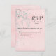 Motif de feuille d'argent et de papillon sur fond rose saumon texturé pour mariage ou renouvellement de vœux RSVP