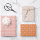 Un ensemble de trois papiers d'emballage géométriques coordonnés uniques dans une palette claire de rose pâle, blanc et orange, s'estompe avec une légère texture et un thème floral abstrait. Beau pour cadeau mariage ou fiançailles, cadeau de bachelorette, ou à tout moment.