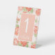 Panneau du numéro de table du mariage rose à fleurs orange.