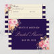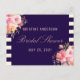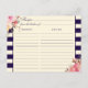 Ces cartes de recettes florales pour Fêtes des mariées présentent des roses d'aquarelle rose vif peints à la main sur un arrière - plan bleu marine avec bordure rayée bleue et crème. Personnalisez avec la mariée pour être le nom et la date de la douche nuptiale. Demandez à vos invités de remplir les cartes et de les amener à la douche pour un cadeau unique. Conçu par Susan Coffey.