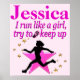 Je cours comme un Champion, essayez de garder personnalisé jolie Poster rose. Motivez votre coureur exceptionnel avec l'un de nos modèles extraordinaires Running sur Tee - shirts, Vêtements, Bijoux, Vêtements, Vêtements, Décor de chambre, Affiches, et une sélection exceptionnelle de cadeaux à www.zazzle.com/mysportsstar. Cette fille de piste et de champ était censée être une étoile sportive. Nos affiches personnalisées uniques et magnifiques de Track and Running et de wall art font un cadeau précieux pour les anniversaires, les fêtes et toute occasion. Ce Runner est rapide comme la foudre.