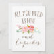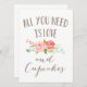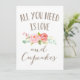 Ce dessin mignon et élégant présente de jolies fleurs aquarellées et dit "Tout ce dont vous avez besoin est l'amour et les cupcakes"