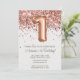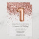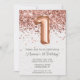 Rose Gold 1st Birthday Party Invitation et rose or élégant moderne 1er anniversaire invitation pour une fille de 1 an avec écriture de script moderne et amusant ballons en feuille avec papier de texture imprimée arrière - plan.