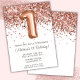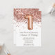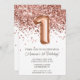 Rose Gold 1st Birthday Party Invitation et or rose élégant moderne 1er anniversaire invitation pour une fille de 1 an avec écriture de script moderne et des ballons de papier amusant.