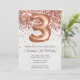 Rose Gold 3ème anniversaire Invitation et rose or élégant moderne 3ème anniversaire invitation pour une fille de 3 ans avec écriture de script moderne et amusant ballons en feuille de papier avec arrière - plan imprimé.