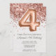 Rose Gold 4th Birthday Party Invitation et rose or élégant moderne 4th anniversaire invitation pour une fille de 4 ans avec écriture de script moderne et amusant ballons en feuille avec papier de texture imprimée arrière - plan.