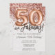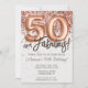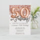 Rose Gold 50th Birthday Party Invitation et or rose élégant moderne 50 et fabuleux avec écriture de script moderne et ballon amusant avec papier de texture imprimée.