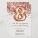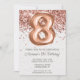 Rose Gold 8th Birthday Party Invitation et or rose élégant moderne 8th anniversaire invitation pour une fille de 8 ans avec écriture de script moderne et des ballons de papier à papier imprimé.