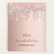 Une élégante parties scintillant en or rose, rose et faux argent goutte, la peinture goutte à goutte. Modèle pendant un an. Personnalisez et ajoutez un nom et un titre. Le nom est écrit en or rose foncé avec un script de style moderne écrit à la main. Parfait pour les affaires, l'école, le journal, le travail ou l'organisation de votre vie personnelle/familiale.