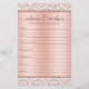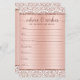 Cette carte de conseils élégante est idéale pour les douches nuptiales et les réceptions de mariage, et présente un damas pailleté rose gold faux en haut et en bas, avec un fond dégradé rose blush rose gold élégant. Trouvez de nombreux autres produits assortis dans la collection.
