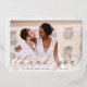 Les cartes de remerciement de mariage élégantes sont dotées d'une seule photo mariage horizontale ou orientée paysage, avec "Merci" superposé dans un script de calligraphie rose chic en feuille d'or. Personnalisez avec vos noms et date mariage le long du bas en lettres de bloc classiques. Ajoutez un message personnel et une signature à l'arrière.