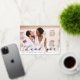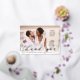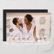 Les cartes de remerciement de mariage élégantes sont dotées d'une seule photo mariage horizontale ou orientée paysage, avec "Merci" superposé dans un script de calligraphie rose chic en feuille d'or. Personnalisez avec vos noms et date mariage le long du bas en lettres de bloc classiques. Ajoutez un message personnel et une signature à l'arrière.