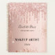 A rose gold metallic looking background with faux rose gold glitter drips, paint dripping look. Personalize and your name ,title or text and a year. The signature is written with a modern hand lettered style script.