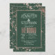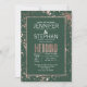 Elégant, chic et moderne imitation rose d'or contour et de peintures éclaboussures sur course verte, invitations de mariage. Ce design classique et sophistiqué convient parfaitement au couple marié branché et élégant. Personnalisez-vous avec votre propre message sur le devant ainsi qu'un monogramme customisé sur le dos. Toute la conception d'impression photo.