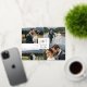 Joyeuses cartes postales en feuille d'or rose avec un collage photo de quatre photos de mariage et JOY écrit en feuille d'or rose avec un petit coeur à l'intérieur du o. Carte postale photo mariage de vacances avec texte en feuille d'or rose et un petit coeur mignon. Carte postale de Noël mariage pour remercier vos invités mariages. Feuille d'or rose Salutation de Noël et mariage merci carte postale.
