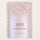 Rose Gold Pailleté Glitter Metallic Monogramme Nom Script Personnalisé 2023 ou agenda personnalisé de n'importe quelle année. Ces dessins présentent votre prénom dans une jolie typographie à queue en forme de lettre manuscrite sur une feuille métallique rose doré avec une bordure à paillettes scintillantes. Ceux-ci sont faciles à personnaliser. Cadeau féminin élégant pour un anniversaire, la fête des mères, un mariage, une douche de mariée, un anniversaire de 16 ans, une entreprise, la rentrée scolaire, un diplôme, un travail professionnel et pour tous ceux qui aiment le style glamour.