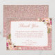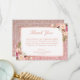 Élégant Blush Fleurs Cadre Doré Carte de Remerciement.