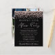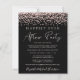 Étage noir abordable ou faire-part mariage privé et réception de mariage ou de fête de fête. L'avant présente des confettis de parties scintillant en or rose et "Happily Ever After Party" dans un mélange de typographie en or rose clair simple et un script en or rose chic et moderne. Personnalisez votre faire-part et votre invitation et ajoutez vos noms dans un script de type signature. Au verso, vous trouverez votre photo de mariage, vos prénoms et votre date de mariage.