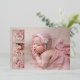 Carte Faire-part de naissance moderne avec un collage photo avec une grande photo d'arrière - plan et trois photos de carré sur la gauche. Les bordures autour des trois photos sur la gauche avec le nom du bébé et les statistiques de naissance sont en feuille d'or rose. Le dos a votre message personnalisé dans un rose rose poussiéreux. Cette carte Faire-part de naissance simple mais élégante est une excellente façon de partager vos photos préférées de votre nouveau-né fille.