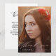 Ce carte de remerciements de graduation présente une calligraphie moderne et une photo complète du nouveau diplômé. Sur le devant, une superposition en or rose inclut les mots "merci" écrits dans de jolies lettres écrites; le nom du diplômé et son année de diplôme sont écrits en blanc ci-dessous. La conception typographique recouvre une photo verticale complète du diplômé. À l'arrière, vous pouvez écrire un message personnalisé aux destinataires ou supprimer le texte modèle pour créer une zone vide pour une note manuscrite.