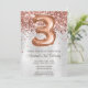 Rose Gold Silver 3ème anniversaire Invitation fête et or rose élégant moderne 3ème anniversaire invitation pour une fille de 3 ans avec écriture de script moderne et des ballons de papier amusant.