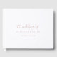 Ce livre d'hôtes rose, or simple et minimaliste, mariage est parfait pour un mariage moderne. Le design sobre et élégant présente une typographie de script classique et sophistiquée en or rose. Customisez le couvercle avant et la colonne vertébrale pour y inclure les noms de la mariée et du marié et la date du mariage.