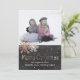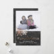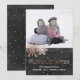 Carte de voeux chic à plat, avec votre photo personnalisée, sur la moitié supérieure de la carte et de jolis pois d'or rose décorant la moitié inférieure gris charbon de bois. Graphiques de deux jolis flocons d'or rose et rose texte en or graphique en lecture Joyeux Noël, décorer le devant de la carte. Personnalisez le texte blanc, en bas, pour convenir à votre carte de vacances en fonction des besoins. Customisez pour ajouter du texte supplémentaire, à l'arrière. Exemple de photo avec l'aimable autorisation de Lorri Lang.