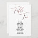 Cette conception simple et élégante présente "Table Ten" rendu dans une police d'écriture moderne et agrémenté d'un effet d'or rose faux métallique. La police des noms peut être modifiée si vous le souhaitez. Comme la couleur arrière - plan. Les détails apparaîtront à l'avant et à l'arrière. // 151 //