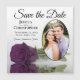 Ces cartes magnétiques de sauvegarde de date sont un moyen merveilleux de faire savoir à vos amis et à votre famille votre mariage imminent. Elles présentent un beau design à la fois romantique et élégant avec une seule rose pourpre ou de couleur aubergine à longue tige se reflétant dans une mare d'eau avec des vagues et des ondulations et votre photo dans un cadre ovale sur un fond blanc classique. La légende indique "Sauver la date" avec un espace pour vos noms, la date et le lieu.