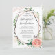 Faire-part de mariage géométrique Rose moderne en or. Ces invitations de feuillage verdoyant feront le tour! cet invitation personnalisable dispose d'un cadre géométrique moderne avec parties scintillant or Rose et noir. Les bordures sont ornées de feuillage vert comme l'eucalyptus, les baies et les fleurs roses roses et crème. Les côtés sont ornés d'une parties scintillant d'or Rose. Cela fait un grand invitation de feuillage moderne. Trouvez d'autres invitations à un mariage sur le bois à l'adresse https://www.zazzle.com/oddlotweddings Cliquez simplement sur le bouton "customiser" pour plus de personnalisation.