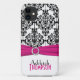 Coque-Mate moderne personnalisé rose chaud, noir et blanc damassé Barely There™ iPhone 5 Coque avec ruban et broche à bijoux IMPRIMÉS.