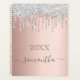 Un faux rose or à l'apparence métallique arrière - plan avec l'or rose élégant et faux parties scintillant argent gouttes, la peinture goutte à goutte. Modèle pendant un an. Personnalisez et ajoutez un nom. Le nom est écrit en gris avec un grand script de style moderne écrit à la main avec des swashes. Parfait pour l'école, le travail ou l'organisation de votre vie personnelle/familiale. Pour que les swashes ne suppriment que le nom de l'échantillon, laissez les espaces ou les émoticônes devant et après le nom