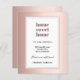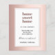 Un arrière - plan rose d'or faux métallique et féminin. Avec le texte : Home Sweet Home. Personnalisez et ajoutez votre nouvelle adresse et votre nouveau nom. Script minimaliste et moderne, polices. Or rose foncé et lettres noires.