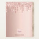 Un arrière - plan d'or rose avec d'élégantes gouttes de parties scintillant d'or faux rose, look goutte de peinture. Modèle pendant un an. Personnalisez et ajoutez un titre, un nom d'entreprise, des coordonnées sur le devant. Le titre du livre est écrit en or rose foncé avec un grand script de style à la main moderne. Pour que les swashes ne suppriment que le nom de l'échantillon, laissez les espaces ou émoticônes devant et après le nom. Un planificateur de rendez-vous pour les maquilleurs, les designers de cheveux, les salons de coiffure et de beauté.