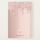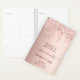 Un faux rose or à l'apparence métallique arrière - plan avec élégantes gouttes de parties scintillant d'or faux rose, look goutte à goutte de peinture. Modèle pendant un an. Personnalisez et ajoutez un titre, un nom d'entreprise, des coordonnées sur le devant. Le titre du livre est écrit en or rose foncé avec un grand script de style à la main moderne. Pour que les swashes ne suppriment que le nom de l'échantillon, laissez les espaces ou émoticônes devant et après le nom. Un planificateur de rendez-vous pour les maquilleurs, les designers de cheveux, les salons de coiffure et de beauté.